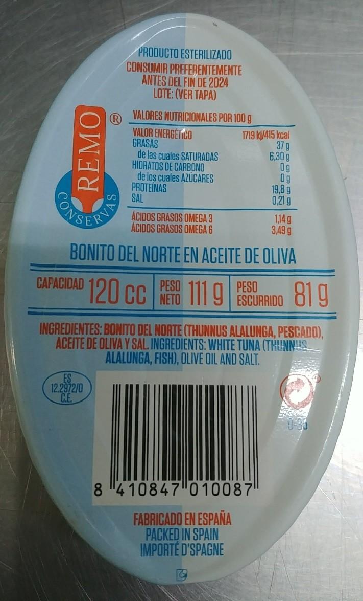 Fabricado por Conservas Remo, S.L. – Polígono Industrial La Peñona. Calle Mecánica, 302 – 33211 Gijón