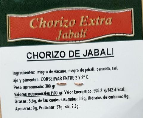 Chorizo de jabalí la Aldea – Tineo. Envase al vacio 300 gr. – El kg. sale a 21,33 €
