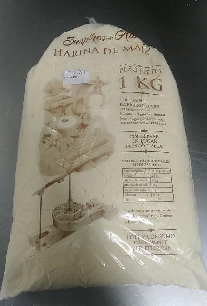 Harina de maíz molida en molino de agua tradicional. 1 kg.