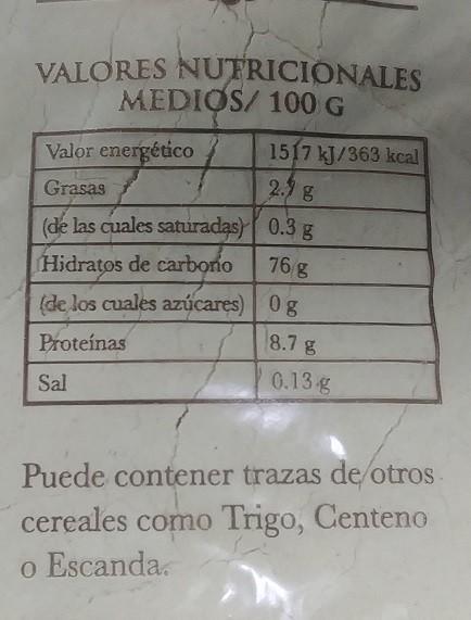 Ingredientes: harina de maiz. Puede contener trazas de trigo, centeno y escanda