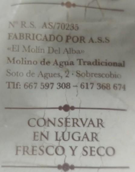 Fabricado por A.S.S. El Molín del Alba, Soto de Agues, 2 – Sobrescobio. Asturias